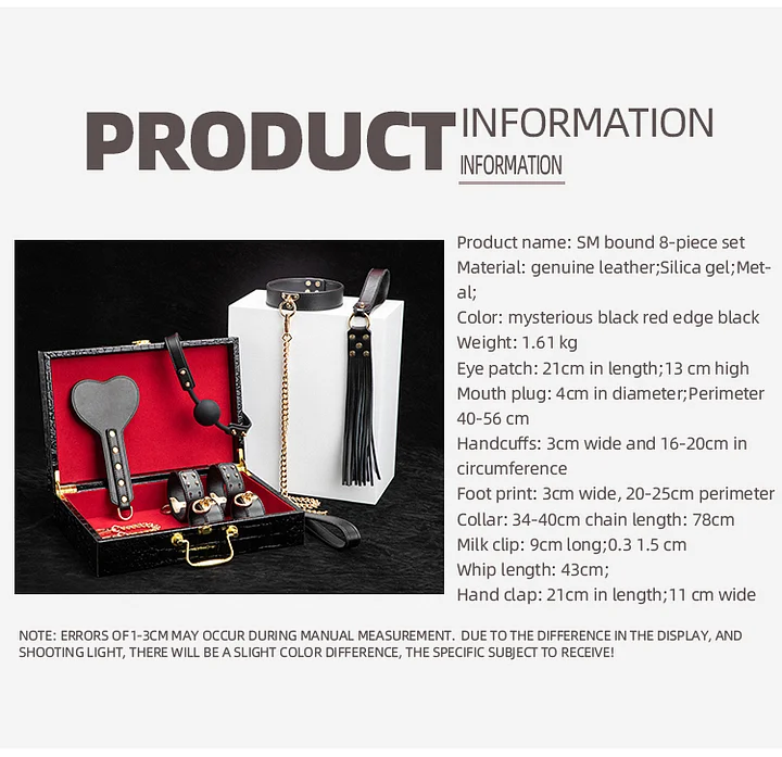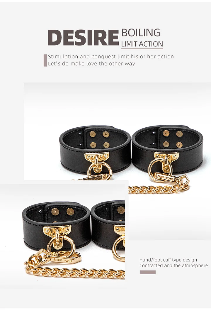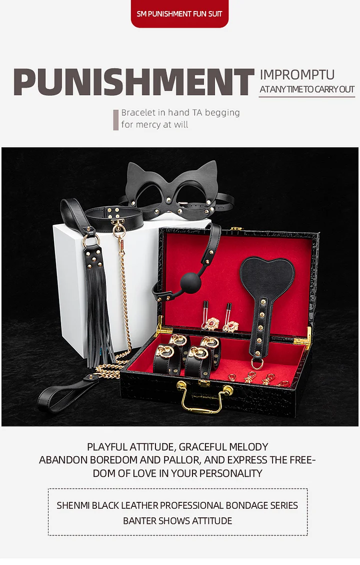 Luxury Portable 8 Pieces Leather Bondage Set Of Fun Tools Training Handcuffs Binding Adult Toy